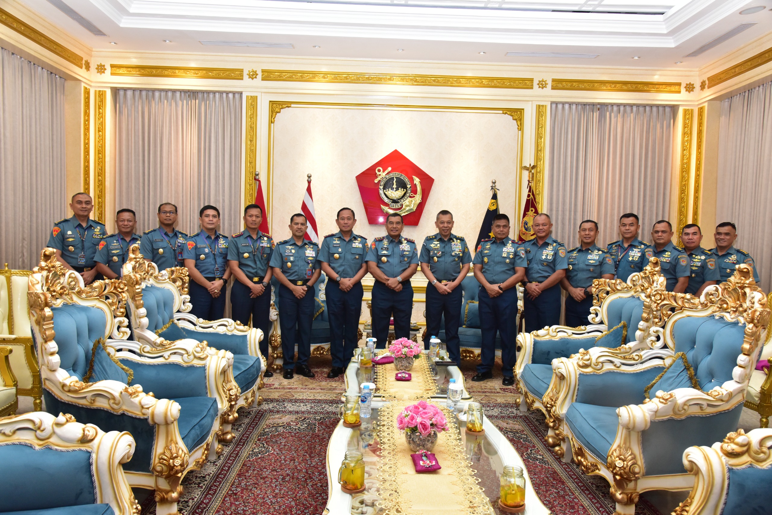 Komandan Korps Marinir (Dankormar) Mayor Jenderal TNI (Mar) Dr. Endi Supardi, S.E., M.M., M.Tr.Opsla., CHRMP., CRMP., menerima kunjungan courtesy call dari Asisten Operasi (Asops) Kepala Staf Angkatan Laut (Kasal) Laksamana Muda TNI Yayan Sofian, S.T., (tautan tidak tersedia), CHRMP., M.Tr.Opsla., dan Panglima Komando Lintas Laut Militer (Pangkolinlamil) Laksamana Muda TNI Hudiarto Krisno Utomo, PSC(j) M.A., M.M.S., CHRMP., di Admiral Room, Gedung Utama Markas Komando Korps Marinir (Mako Kormar), Jakarta Pusat, pada Rabu (02/07/2025).