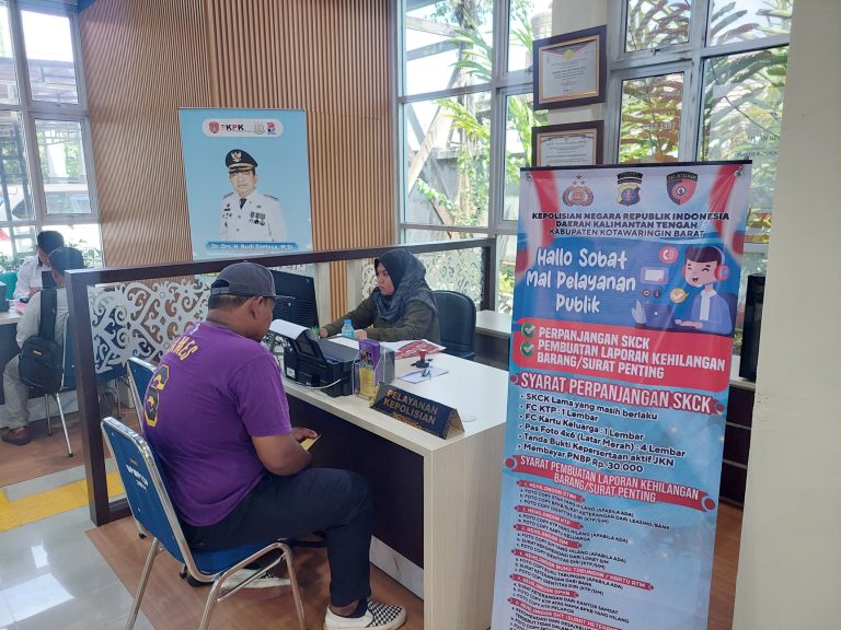 Polres Kotawaringin Barat (Kobar) terus berkomitmen untuk memberikan pelayanan publik terbaik ke masyarakat terwujud dalam Mal Pelayanan Publik (MPP) Kabupaten Kotawaringin Barat.