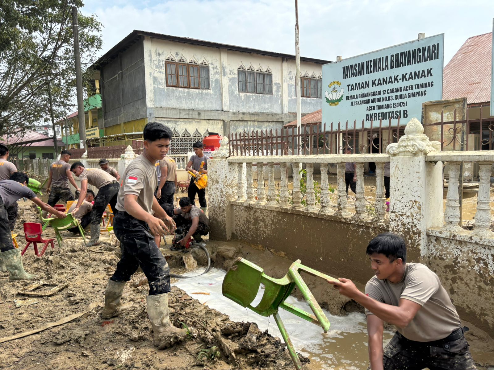 Kegiatan diawali dengan apel pagi pada pukul 07.45 WIB sebagai bentuk pengecekan kesiapan personel. Selanjutnya, pukul 08.00 WIB, personel yang dipimpin Briptu Riski Mulya melaksanakan pembersihan di TK Kemala Bhayangkari di Jalan Iskandar Muda, Kuala Simpang. Di waktu yang sama, tim lainnya yang dipimpin Briptu Allifyan Ryadi melakukan pembersihan pascabanjir di Yayasan Pendidikan Ma’arif Tamiang (SMP Swasta Islam).