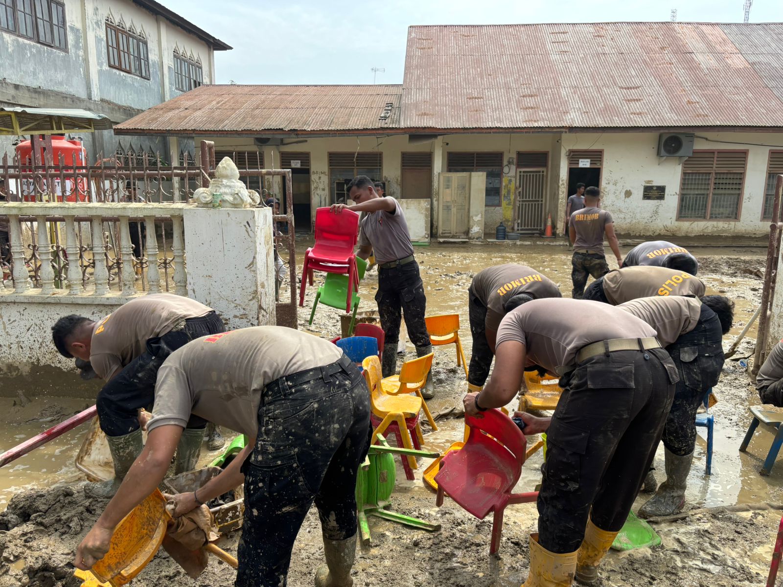Sekitar pukul 07.00 WIB, personel Randurlap Pasukan Brimob I di bawah pimpinan Briptu Realdi Saptura menyediakan bantuan konsumsi bagi personel dan masyarakat. Sebanyak kurang lebih 350 porsi makanan pagi, siang, dan malam disiapkan guna memastikan kebutuhan dasar korban banjir tetap terpenuhi.