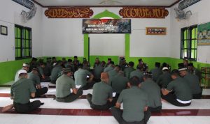 Prajurit TNI di jajarannya Kodim 0110/Abdya melaksanakan dzikir dan doa bersama di Mushola dalam satuan, Desa Pasar Kecamatan Blangpidie, Kamis (3/10/2024).
