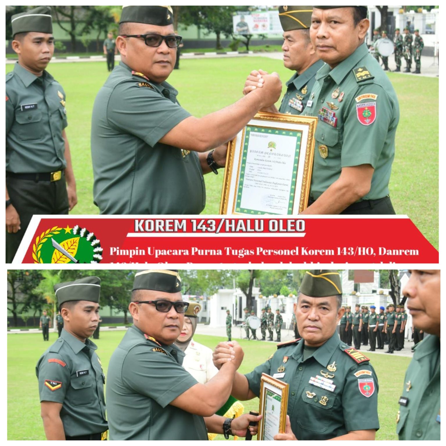 Upacara tradisi purna tugas berlangsung khidmat dan diikuti oleh Kasrem, para Kasi Kasrem, Kabalak aju dan Kabalk Rem, perwira, bintara, tamtama serta PNS Korem 143/HO. Dalam kesempatan tersebut, Danrem 143/HO memberikan piagam penghargaan kepada personel yang memasuki masa purna tugas sebagai simbol penghormatan atas pengabdian yang telah diberikan.