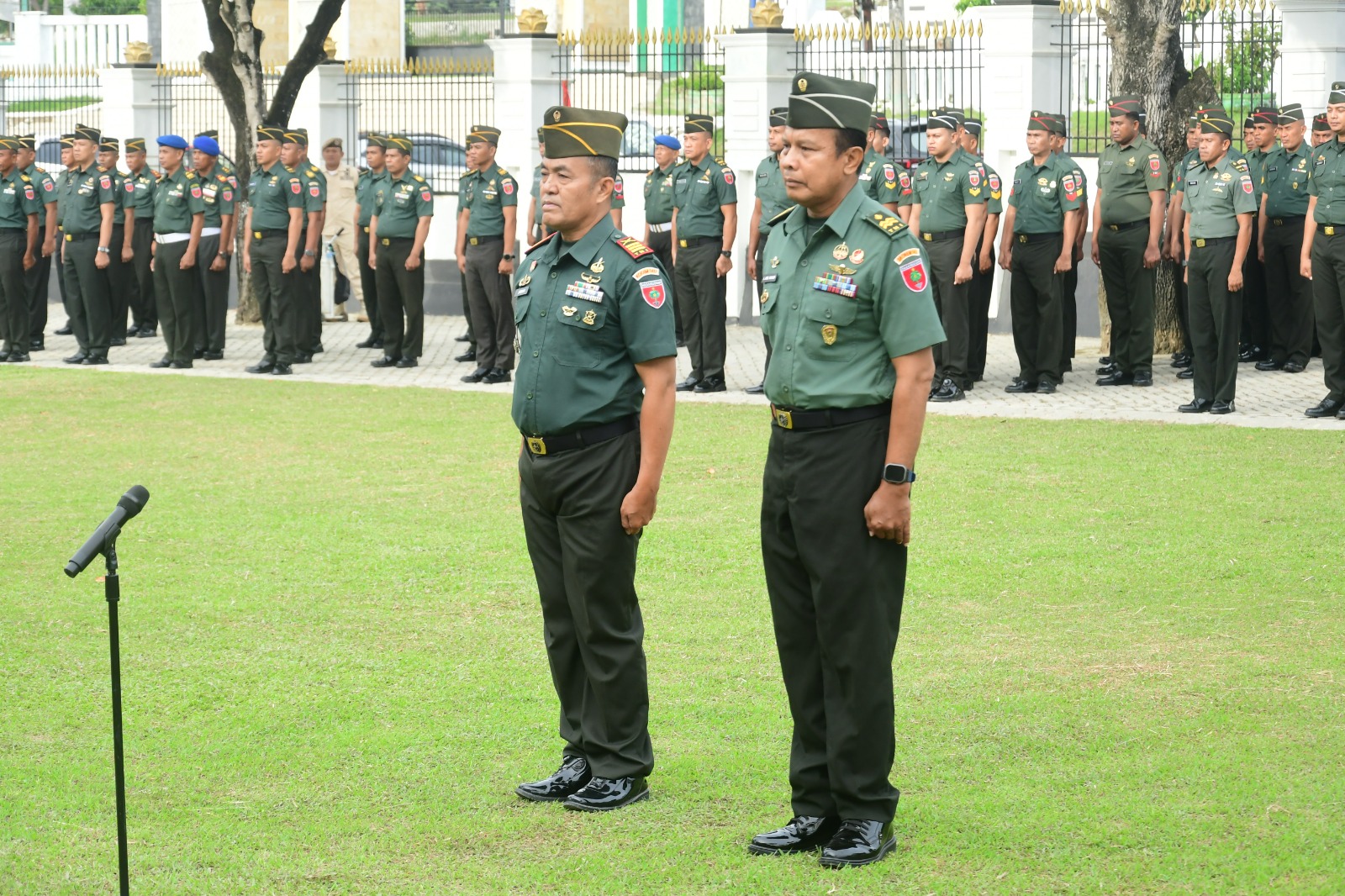 Komandan Korem 143/Halu Oleo Brigjen TNI R. Wahyu Sugiarto, S.I.P.,M.Han memimpin langsung upacara purna tugas personel Korem 143/HO yang dilaksanakan di Lapangan Upacara Makorem 143/HO, Kendari.