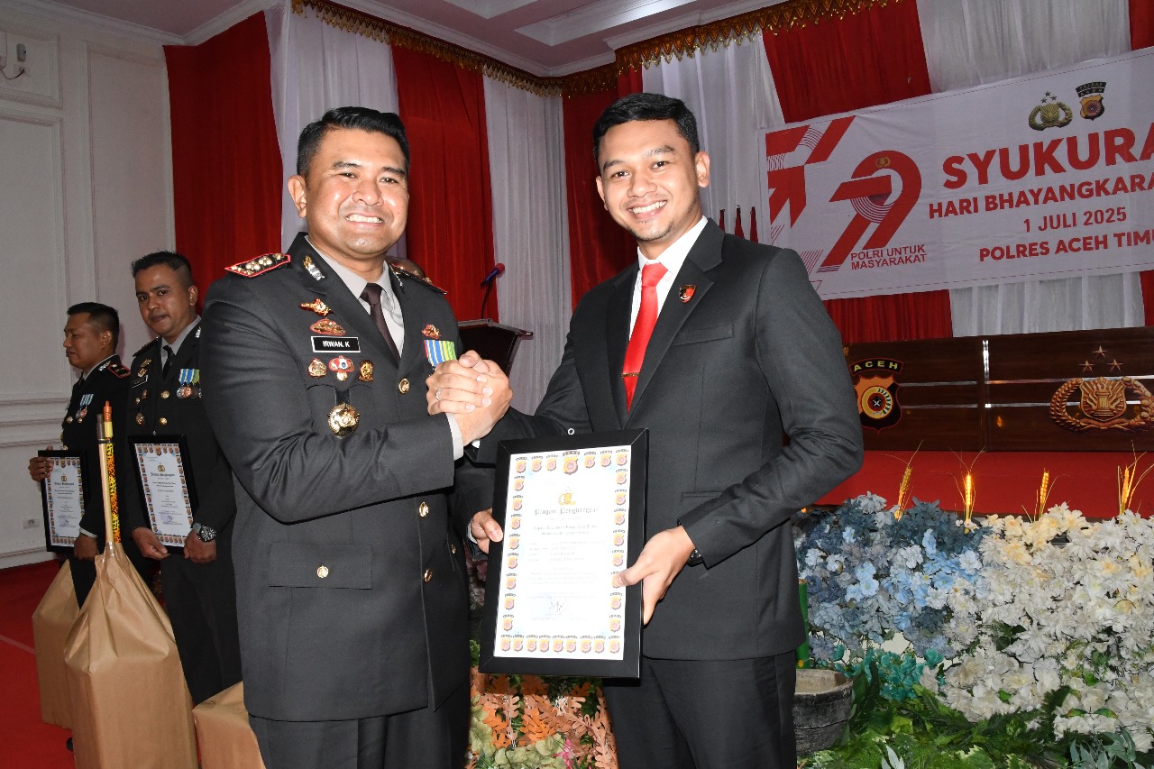 Setelah melaksanakan upacara peringatan Hari Bhayangkara ke-79, Polres Aceh Timur, Polda Aceh mengadakan acara Syukuran di Aula Bhara Daksa. Selasa, (01/07/2025). Selain itu, berbagai penghargaan juga diberikan kepada individu dan kelompok yang berprestasi dalam beberapa kategori, antara lain Penghargaan kepada pemenang lomba kebersihan Polsek, Penghargaan kepada personel Satreskrim dan Satresnarkoba yang berhasil mengungkap sejumlah tindak pidana.