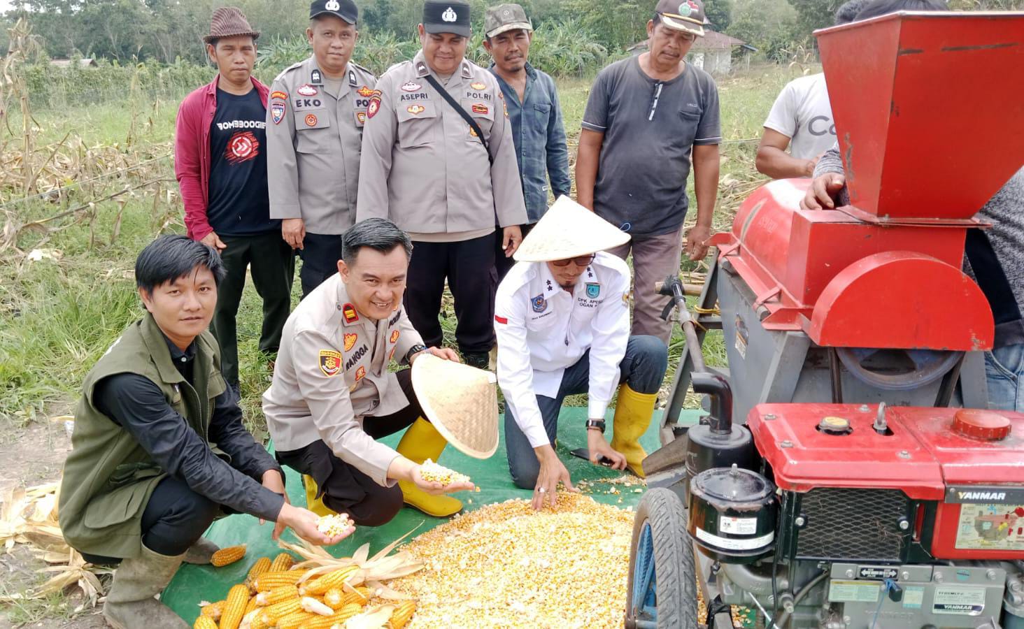 Polres Ogan Ilir Melalui Polsek Muara Kuang Dukung Ketahanan Pangan, Hadiri Panen Jagung di Desa Tanjung Miring