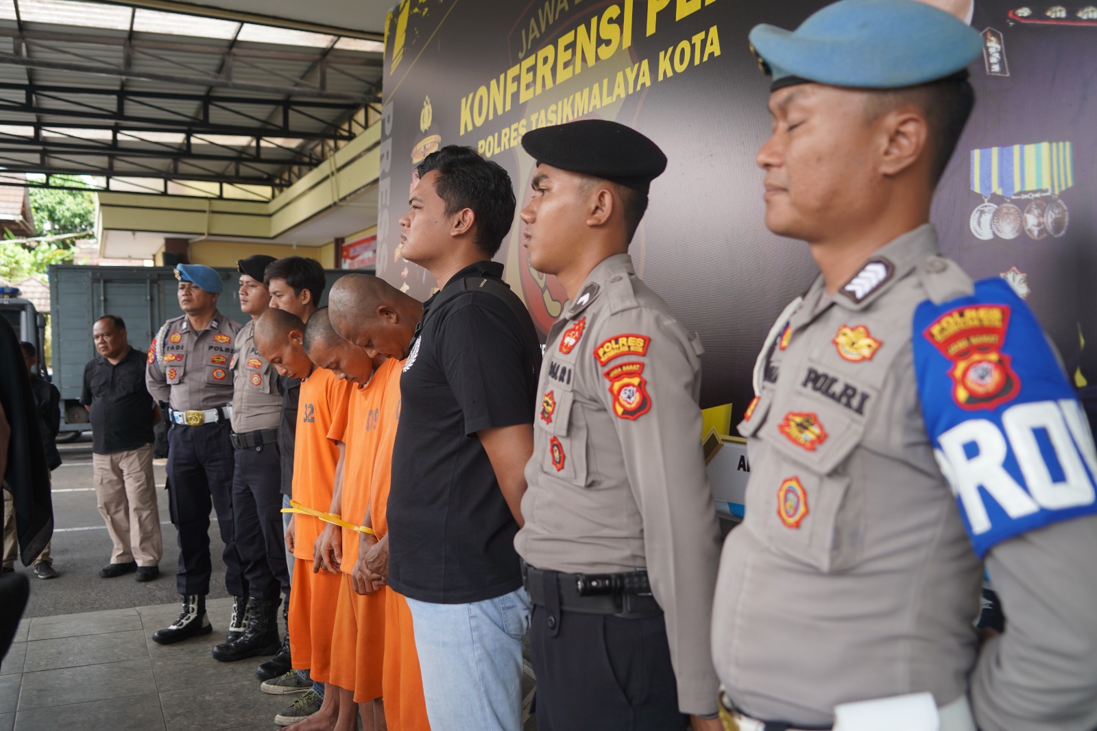 POLRES TASIKMALAYA KOTA UNGKAP JARINGAN PENCURIAN KENDARAAN RODA EMPAT LINTAS WILAYAH