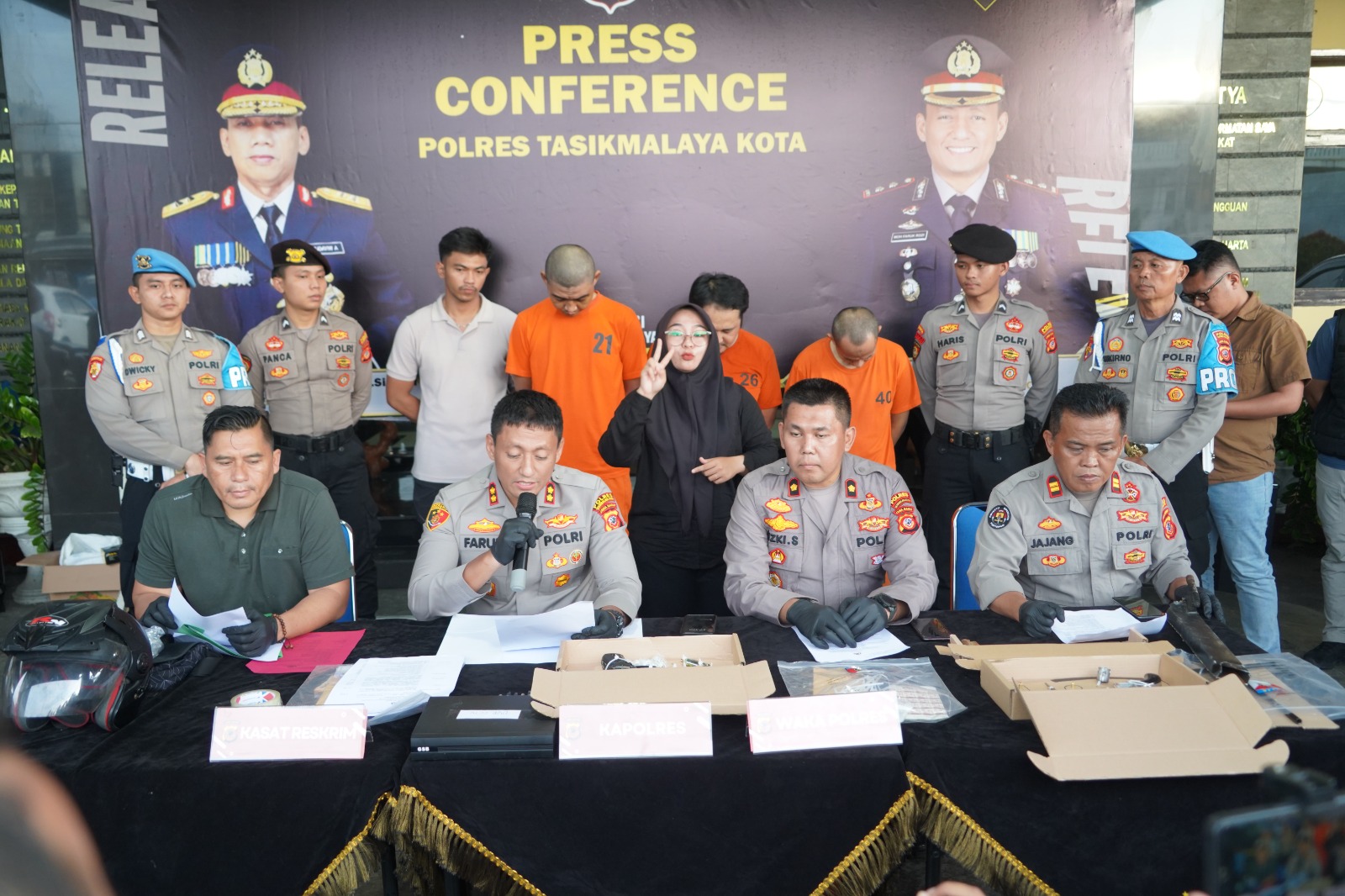 Kapolres Tasikmalaya Kota, AKBP Moh Faruk Rozi, S.I.K., M.Si., menggelar konferensi pers untuk mengungkap tiga kasus kriminal yang tengah ditangani oleh Satreskrim Polres Tasikmalaya Kota. Ketiga kasus tersebut meliputi rudapaksa yang melibatkan pimpinan lembaga pendidikan, penganiayaan dengan senjata api rakitan, dan percobaan pemerasan di Indomaret. 16/01/2025