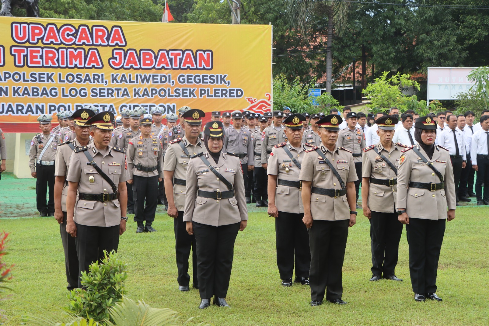 Polresta Cirebon melaksanakan kegiatan Upacara Serah Terima Jabatan (Sertijab) Kabag SDM, Kapolsek Losari, Kapolsek Kaliwedi, Kapolsek Gegesik dan Pengukuhan Kabag Log serta Kapolsek Plered Polresta Cirebon, Senin (12/1/2026). Kegiatan tersebut bertempat di lapangan apel Mapolresta Cirebon termasuk Jl.Raden Dewi Sartika No.1 Sumber Kab.Cirebon.