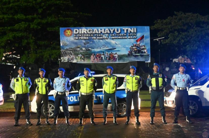 Dalam rangka memperingati HUT ke-80 TNI, Polisi Militer TNI AU (POMAU) Lanud Raden Sadjad melaksanakan patroli bersama di wilayah Natuna, Provinsi Kepulauan Riau, pada Sabtu (4/10/2025) malam.