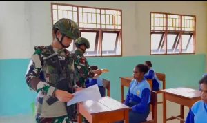 Pos Dataran Beimes Satgas Yonif 642/Kps Bantu Guru dalam Pelaksanaan Ujian