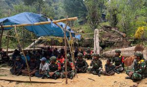 Sebagai bentuk rasa belasungkawa atas meninggalnya Olince (28 th), Personel Pos Kelila Satgas Yonif 641/Bru hadir di rumah duka di Kampung Kelila, Distrik Kelila, Kab. Membramo tengah, Papua Pegunungan, (09/10/2024).