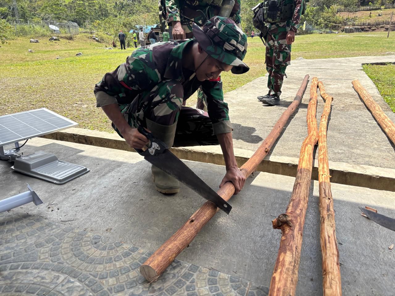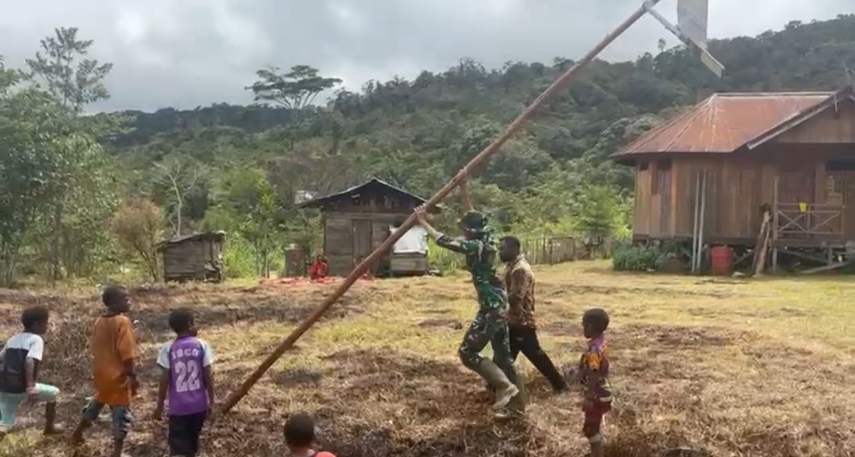 Pos Serambakon Satgas Pamtas RI–PNG Yonif 751/Vira Jaya Sakti (VJS) melaksanakan kegiatan teritorial berupa pemasangan lampu bertenaga surya di Kampung Mersibil. Program penerangan ini bertujuan menghadirkan cahaya ramah lingkungan di wilayah perbatasan, sekaligus meningkatkan rasa aman dan kenyamanan warga saat beraktivitas pada malam hari. (Sabtu, 24/1/2026).