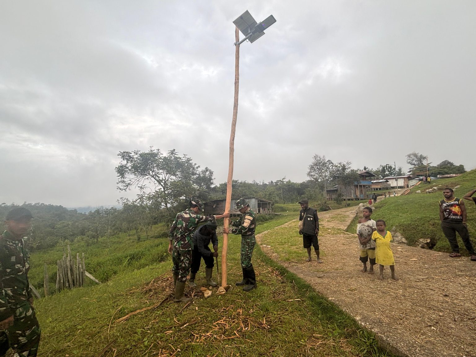 Pos Serambakon Yonif 751/VJS Terangi Kampung Wanbakon dengan Lampu Tenaga Surya