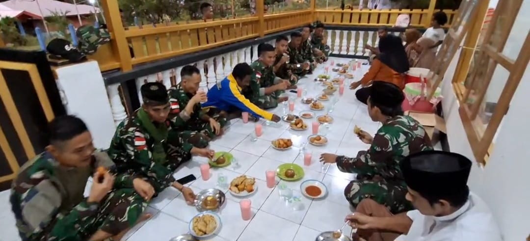 Satgas Pamtas Kewilayahan RI-PNG Yonif 642/Kps melaksanakan kegiatan karya bakti dan buka bersama, Pos Teluk Etna melaksanakan karya bakti dan buka puasa bersama masyarakat di masjid Kampung Kiruru Distrik Teluk Etna Kabupaten Kaimana, Papua Barat. (9/3/2024).
