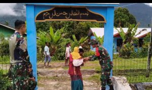 Kegiatan karya bakti bersama masyarakat distrik Teluk Etna di lakukan oleh personil pos Teluk Etna bersama masyarakat untuk membersihkan lingkungan masjid demi menjaga kebersihan serta kenyamanan pada saat beribadah di masjid, serta tidak lupa berbuka bersama masyarakat distrik Teluk Etna.