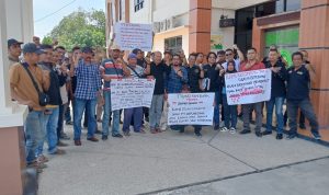 Ada pula yang membentangkan tulisan “Bantu Kami Bapak DR. Habiburokhman, S.H., M.H., (Ketua Komisi Hukum DPR -RI) dan Bapak DR Bob Hasan S.H., M.H., ( Anggota Komisi Hukum DPR RI) untuk Menindak Tegas” PT. BC” Yang telah Merampas Lahan Kami Poktan “Usaha Bersama.”