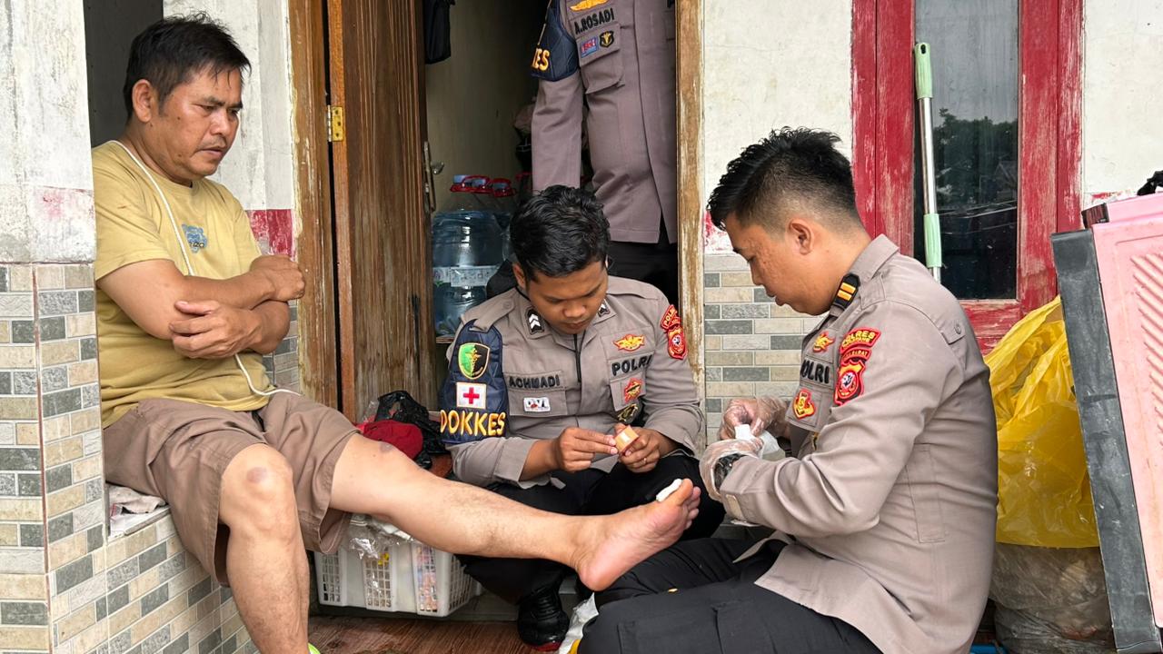 Tenaga kesehatan Polri secara aktif mendatangi rumah-rumah warga untuk melakukan pemeriksaan kesehatan, memberikan pengobatan ringan, serta menyampaikan edukasi kesehatan pascabanjir.