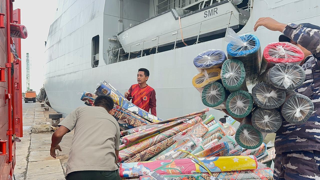 TNI Angkatan Laut (TNI AL) melalui KRI Semarang-594 melaksanakan debarkasi bantuan kemanusiaan dalam rangka dukungan Penanggulangan Bencana Alam (Gulbencal) di wilayah Provinsi Aceh, Provinsi Sumatera Utara, dan Provinsi Sumatera Barat. Kegiatan dilaksanakan di Dermaga Pelindo 104 Belawan, Medan pada Jumat (26/12/2025).