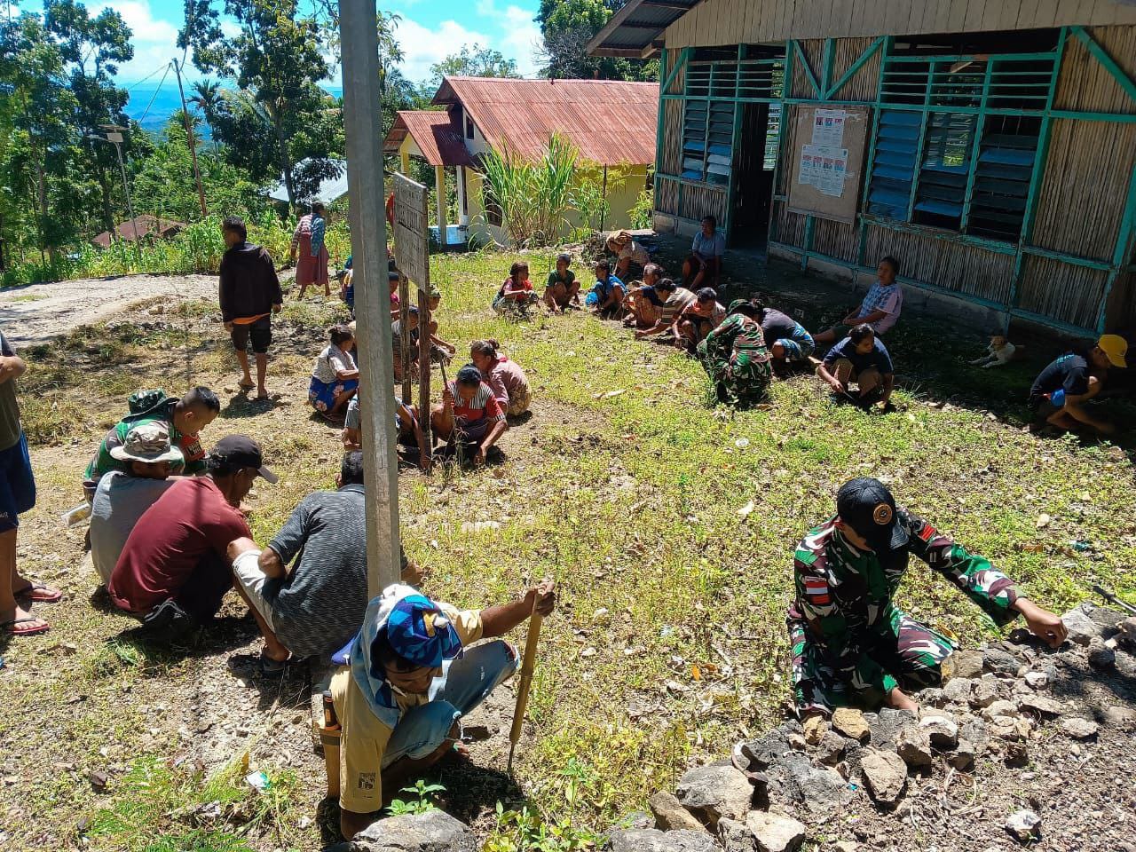 Satgas Pamtas RI-RDTL Yonarhanud 15/DBY Gelar Karya Bakti Bersama Warga Desa Nilulat