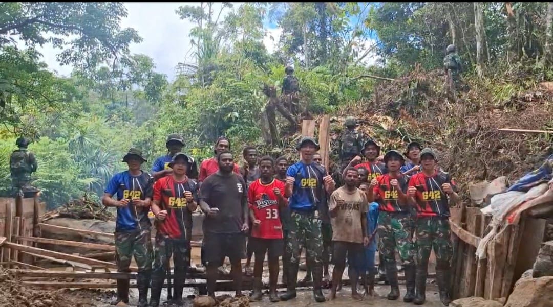 Satgas Pamtas Kewilayahan RI-PNG Papua Barat Yonif 642/kapuas Pos Mesna melaksanakan kegiatan Pembuatan Bendungan air bersih bersama masyarakat di Distrik Moskona Timur, Kabupaten Teluk Bintuni, Provinsi Papua Barat, Jum’at kemarin (15/11/2024)