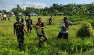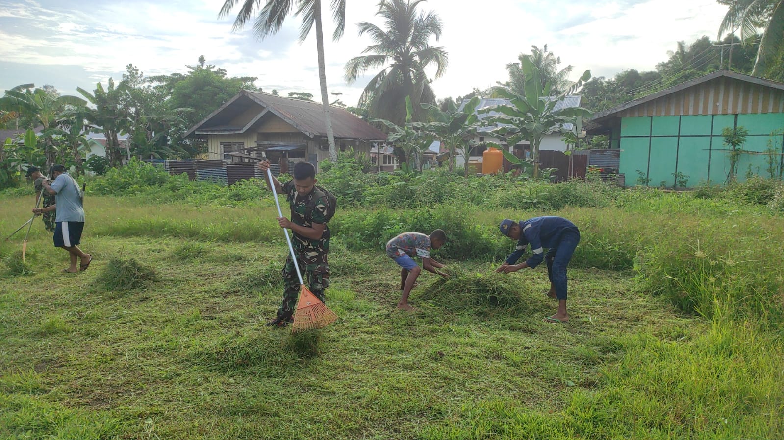Dalam rangka menunjang kegiatan kemah Pramuka Perjumsami sekaligus memperingati Hari Sumpah Pemuda, Satgas Pamtas Kewilayahan Yonif 642/Kps Pos Teluk Arguni melaksanakan karya bakti bersama masyarakat membersihkan Lapangan Besar Wanggita di Kampung Wanggita, Distrik Teluk Arguni, Kaimana (24/10/2024).