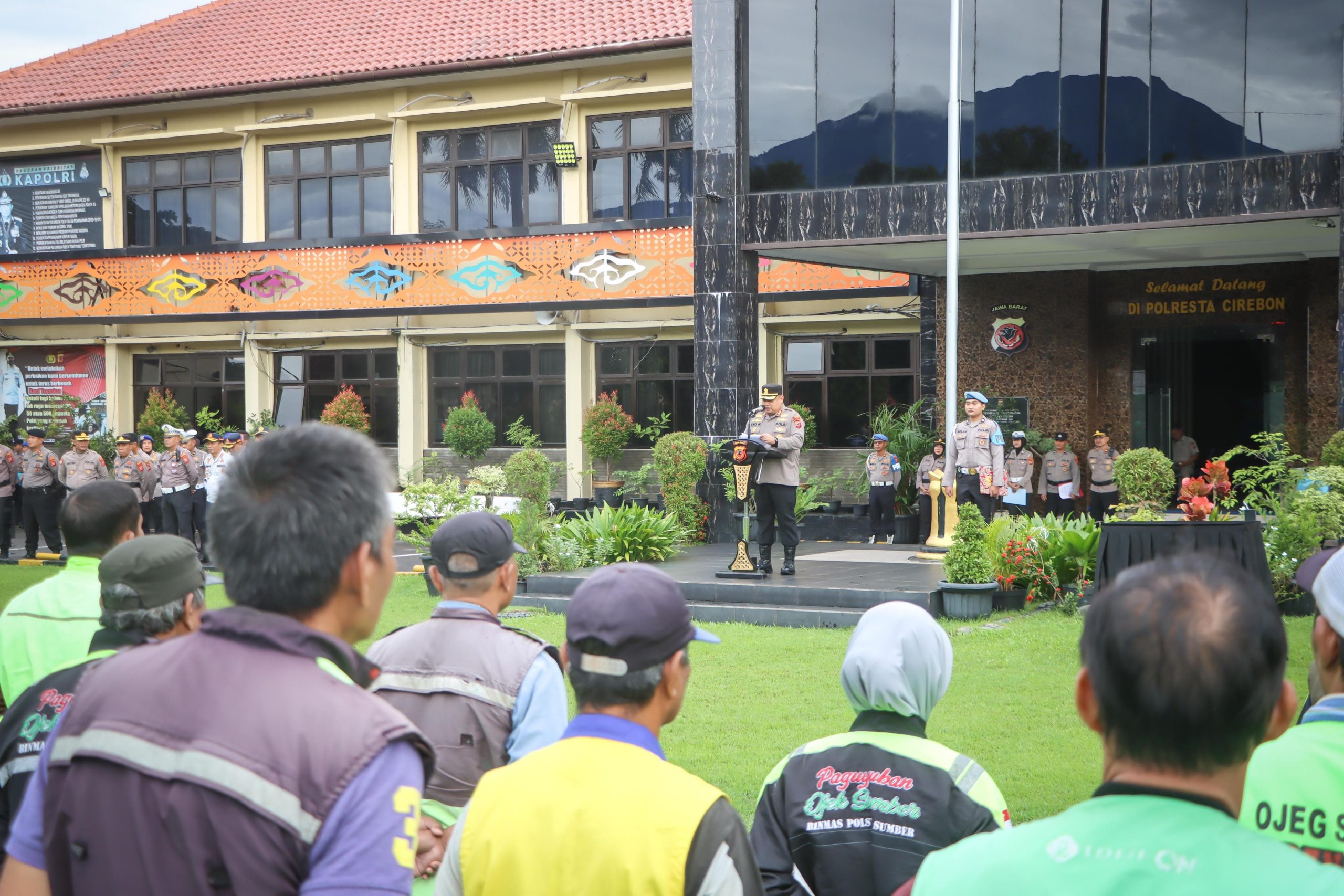 Polresta Cirebon menggelar Apel Ojek Pangkalan, Ojek Online, dan Nelayan Kamtibmas Polresta Cirebon bertajuk “Sauyunan Jaga Lembur”, Jumat (30/1/2026). Kegiatan tersebut berlangsung di Lapangan Apel Mapolresta Cirebon, Jl. Raden Dewi Sartika No. 1, Sumber, Kabupaten Cirebon.