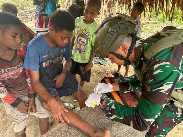 Dalam menciptakan rasa damai dan nyaman pada masyarakat di wilayah penugasannya, personel Pos Sawiyatami Satgas Pamtas RI-PNG Yonif 131/BRS melakukan kegiatan pengobatan gratis ke salah satu desa binaannya yaitu di Kampung Sawiyatami, Distrik Mannem, Papua, *Selasa (14/01/2025).*