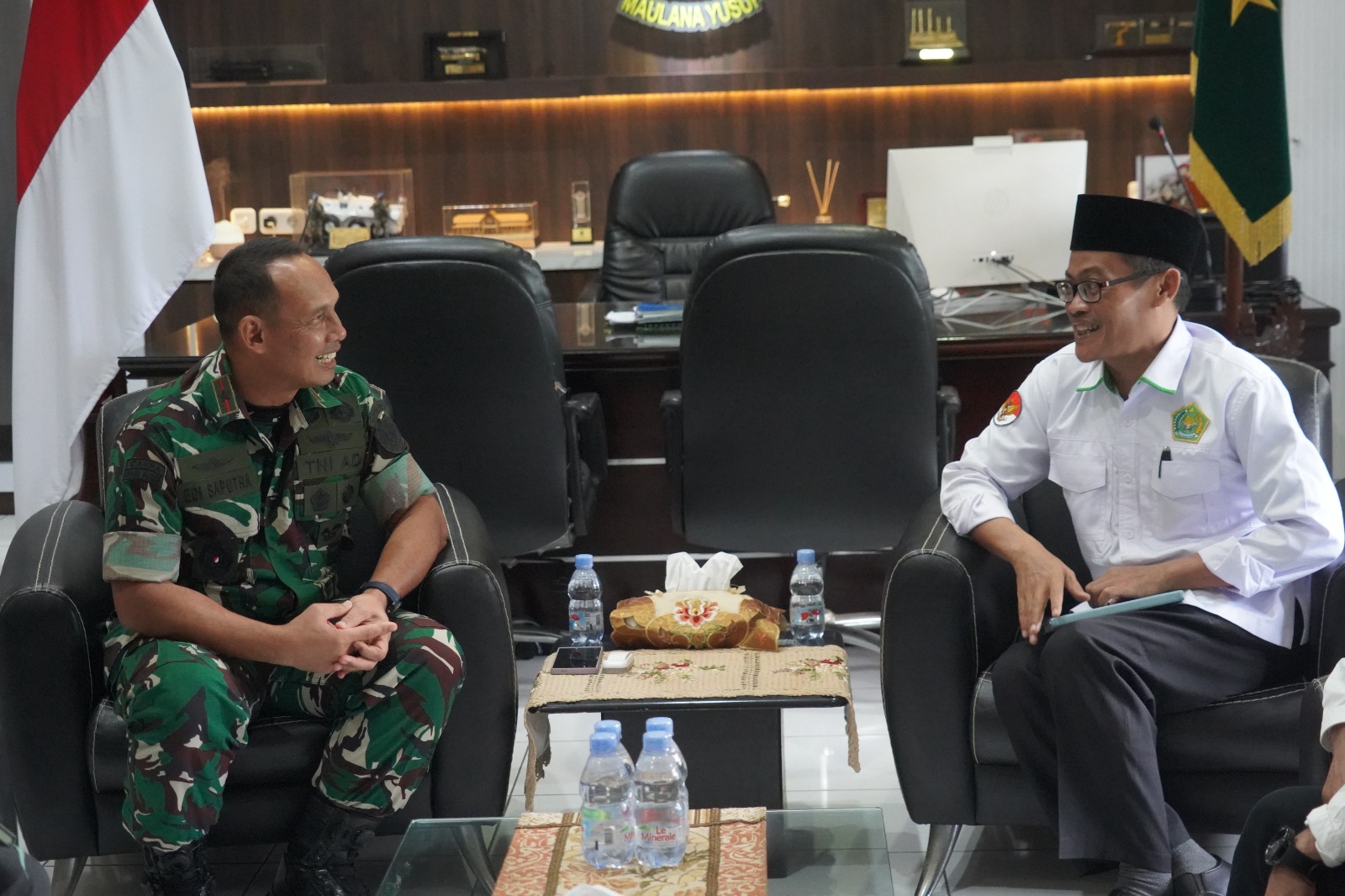 mitratnipolri.co.id. Danrem 064/Maulana Yusuf, Brigjen TNI Edi Saputra, S.I.P., M.Han., menerima kunjungan silaturahmi Rektor Universitas Islam Negeri (UIN) Sultan Maulana Hasanuddin Banten, Prof. Dr. H. Muhammad Ishom, S.Ag., M.A., beserta jajaran di ruang kerja Danrem 064/MY, Jalan Maulana Yusuf No. 9, Kota Serang kemarin (29/9 2025