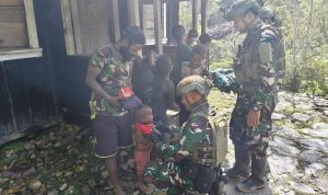 Satgas TNI melalui Satgas Yonif 700 Pos Pintu Jawa kembali menunjukkan kepeduliannya terhadap masyarakat Papua dengan menggelar aksi berbagi pakaian anak di Distrik Sinak Kampung Wombru, sebuah kampung terpencil di tengah pegunungan. Aksi kemanusiaan ini disambut dengan penuh haru dan rasa syukur oleh warga setempat, khususnya para orang tua yang anaknya menerima bantuan. (25/03)