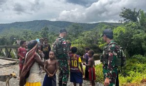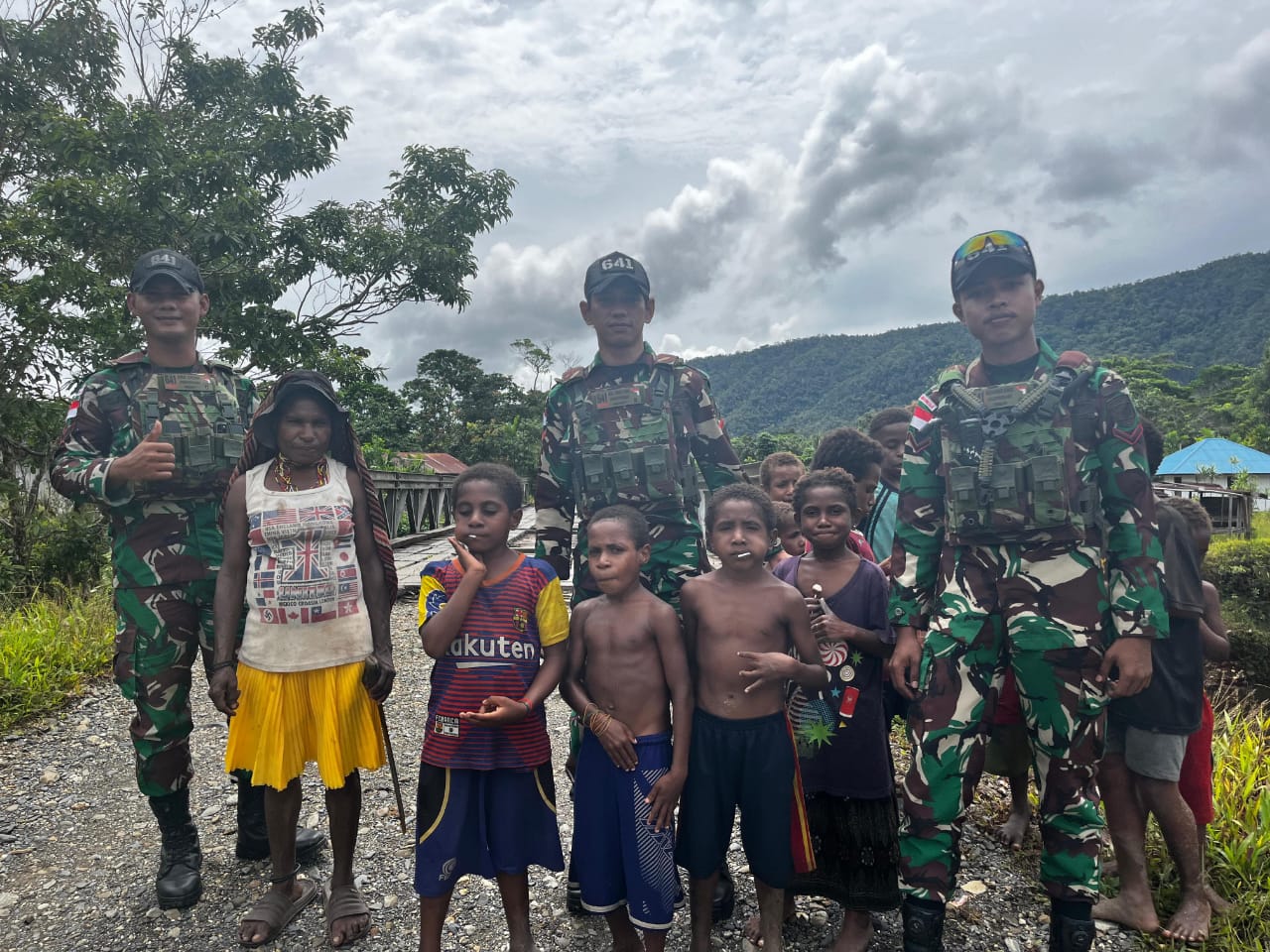 Indahnya berbagi dan bercengkerama dengan warga, anggota Pos Benawa Satgas Yonif 641/Bru menyambangi rumah-rumah warga di wilayah Kampung Rona, Distrik Benawa, Kabupaten Yalimo, Provinsi Papua Pegunungan, (13/01/2025).