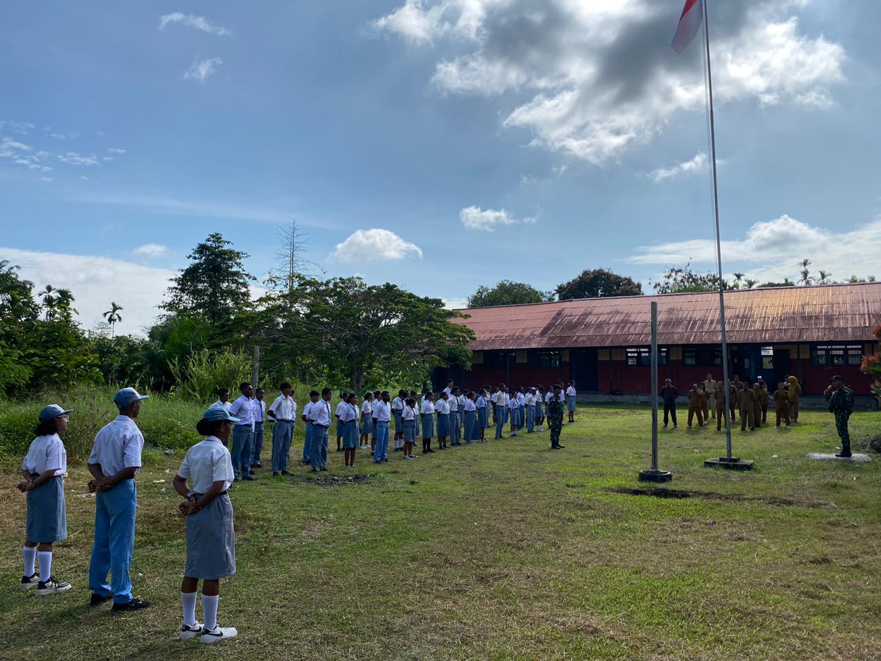 Tidak hanya itu, dalam kesempatan yang sama sebelum dilaksanakan kegiatan Sosialisasi, pagi harinya Satgas Yonif 643/Wns juga terlibat langsung menjadi perangkat upacara bendera yang dipimpin Danpos Satgas Pir IV (Kotis) Kapten Inf Syarifudin Hasibuan bertindak sebagai inspektur upacara. Kemudian setelah kegiatan upacara bendera dilaksanakan dilanjutkan penyerahan Beasiswa dari Dansatgas Yonif 643/Wns kepada siswa dan siswi berprestasi yang berjumlah 9 (sembilan) orang terdiri dari kelas 1, 2 dan 3. Dan kegiatan serupa juga telah dilaksanakan di SMP N 5 Arso.