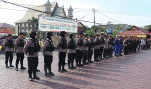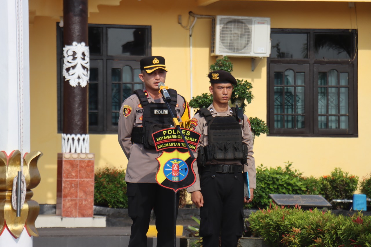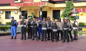 Polres Kotawaringin Barat menggelar apel siaga dalam rangka kesiapan pelantikan presiden dan wakil presiden RI periode 2024 – 2029 di halaman mako Polres Kobar. Sabtu (19/10/2024) Pagi.