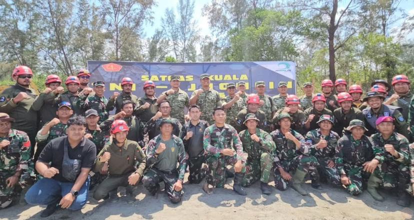 Kunjungan diawali dengan meninjau secara langsung progres kinerja Satgas Kuala TNI-Jhonlin TA 2026 di Muara Kuala Penaga Lama, Kecamatan Seruway.
