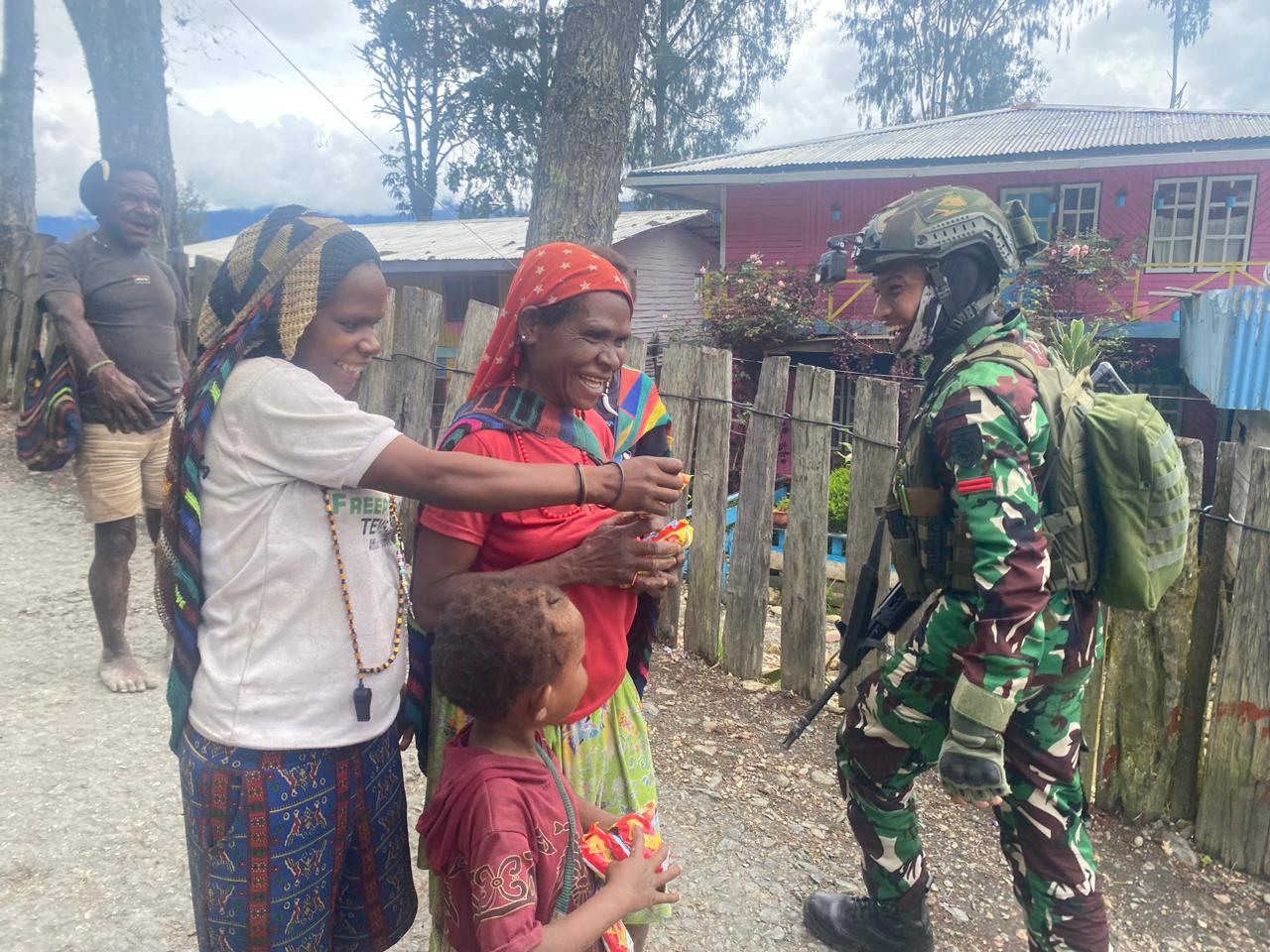 Dengan tetap mengutamakan keamanan selama kegiatan, interaksi komunikasi yang harmonis antara para Prajurit TNI dengan para warga telah menghasilkan jalinan silaturahmi yang akrab antar kedua pihak. Dalam rangka menambah keakraban, para Prajurit TNI membagikan bahan makanan yang dibutuhkan oleh para warga Kampung Pesiga.
