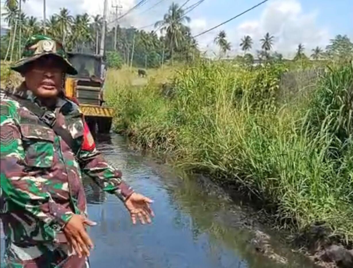 Wujud kepedulian terhadap kebersihan lingkungan dan kelancaran saluran air, Babinsa Kel. Tanjung Merah Koramil 1310-01/Bitung Kodim 1310/Bitung, bersama warga melaksanakan kerja bakti pembersihan jalan dan parit di kanan-kiri jalan antara Kel. Sagerat dan Kelurahan Tanjung Merah, Kec. Matuari, Kota Bitung, Jumat (23/01/2026) Pagi.
