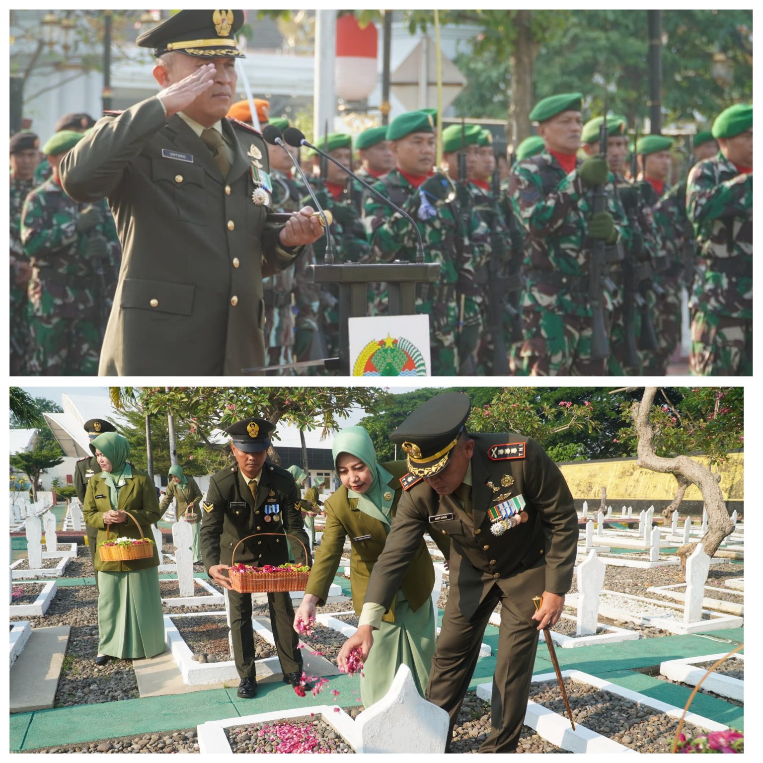 Dalam rangka memperingati HUT ke-80 Tentara Nasional Indonesia (TNI), Korem 081/DSJ menggelar ziarah rombongan di Taman Makam Pahlawan (TMP) Madiun, Jumat (3/10/2025). Kegiatan ini dipimpin langsung oleh Danrem 081/DSJ Kolonel Arm Untoro Hariyanto.