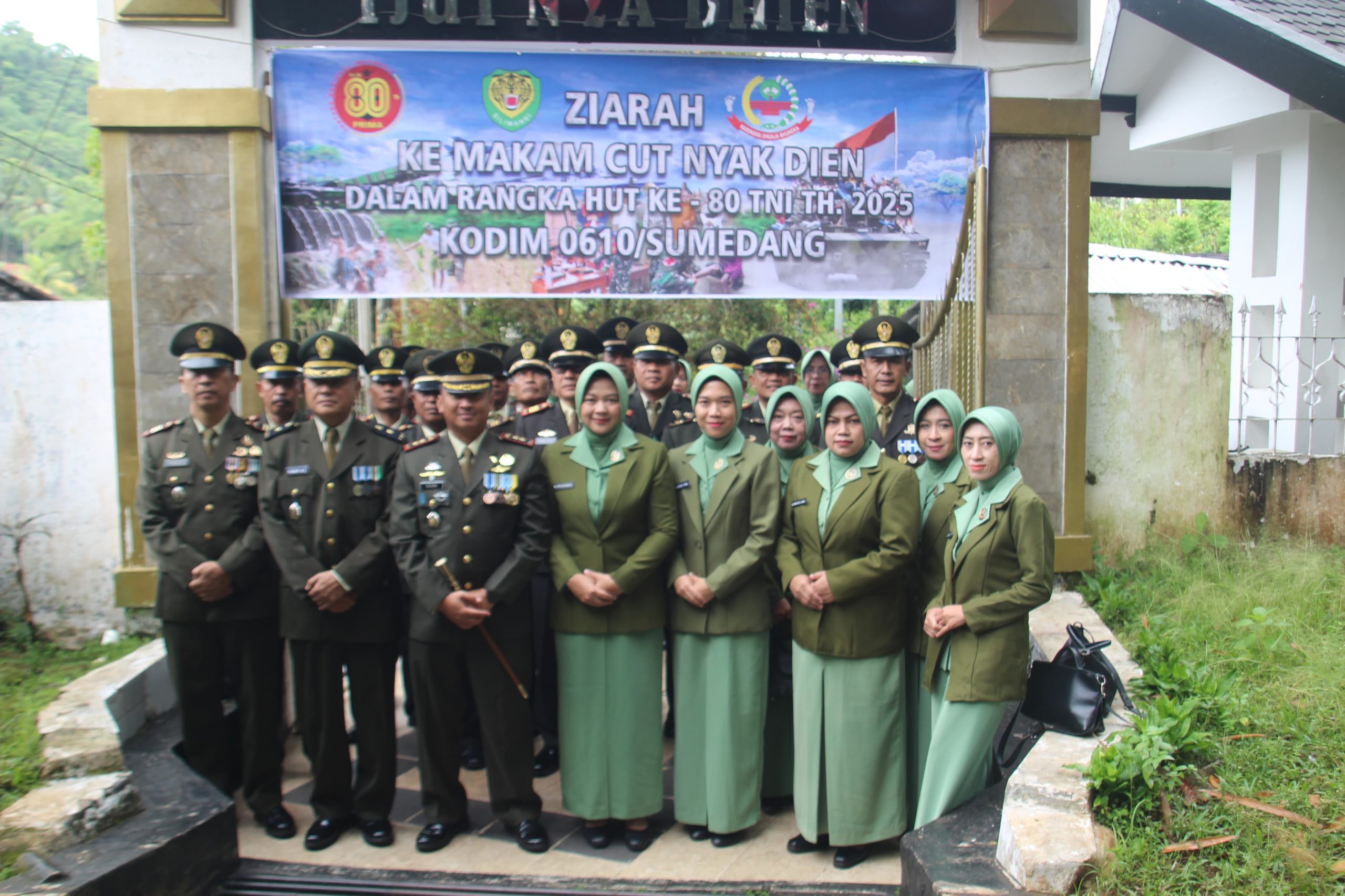 Dalam rangka memperingati Hari Ulang Tahun ke-80 Tentara Nasional Indonesia (TNI), Kodim 0610/Sumedang melaksanakan ziarah ke makam Pahlawan Nasional Cut Nyak Dien yang berada di Taman Makam Pahlawan Gunung Puyuh, Desa Sukajaya, Kecamatan Sumedang Selatan, Kabupaten Sumedang, Jumat, 03-10-2025