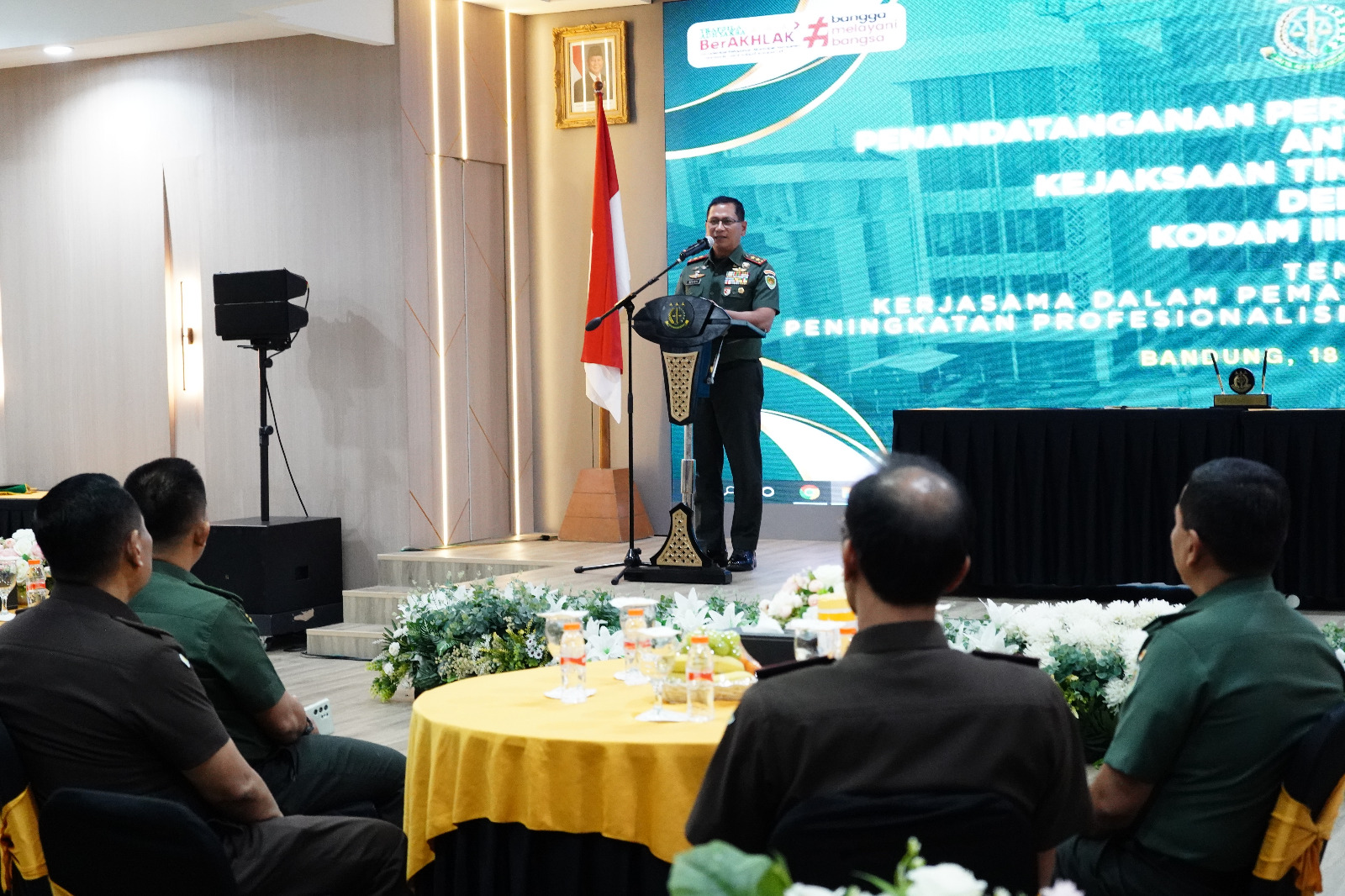 Sementara itu, Pangdam III/Slw menyampaikan bahwa kegiatan penandatanganan perjanjian kerja sama tersebut merupakan momentum yang sangat strategis dan bernilai penting dalam memperkuat sinergi antar-lembaga negara, khususnya dalam pemanfaatan sumber daya serta peningkatan profesionalisme di bidang penegakan hukum.