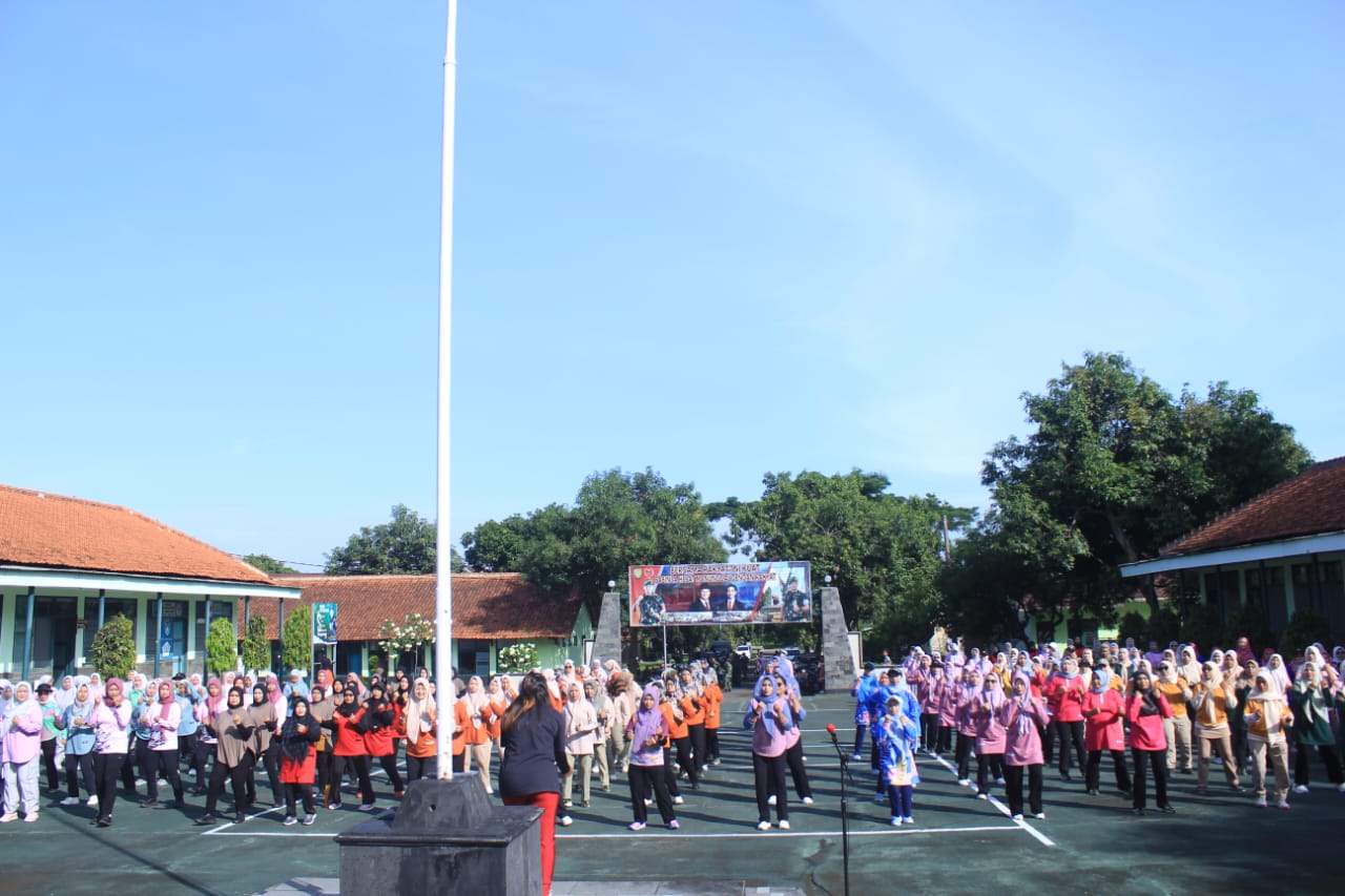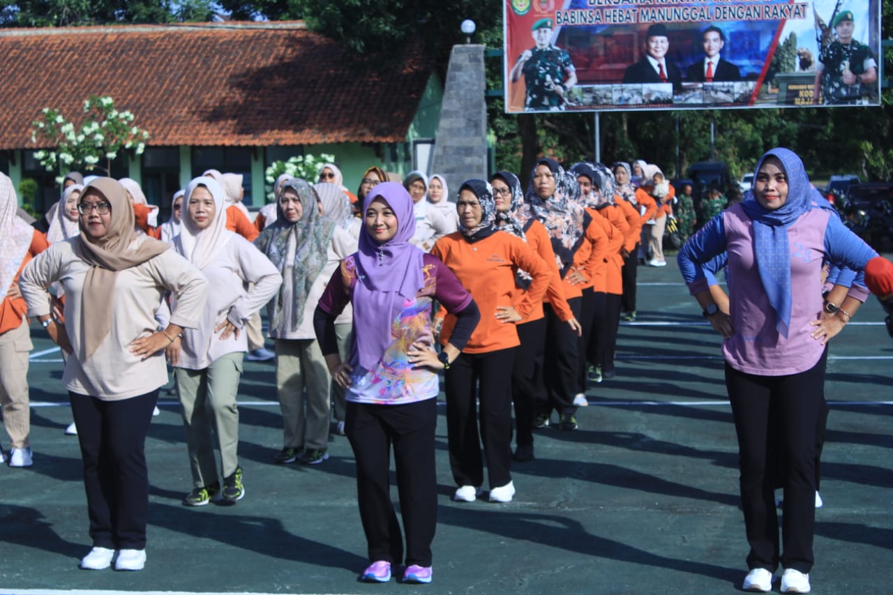 Persit Kartika Chandra Kirana (KCK) Cabang XXVIII Kodim 0617/Majalengka menggelar kegiatan olahraga bersama di halaman Makodim 0617/Majalengka, Jalan KH Abdul Halim, Kelurahan Tonjong, Kecamatan Majalengka, Rabu (17/12/2025).