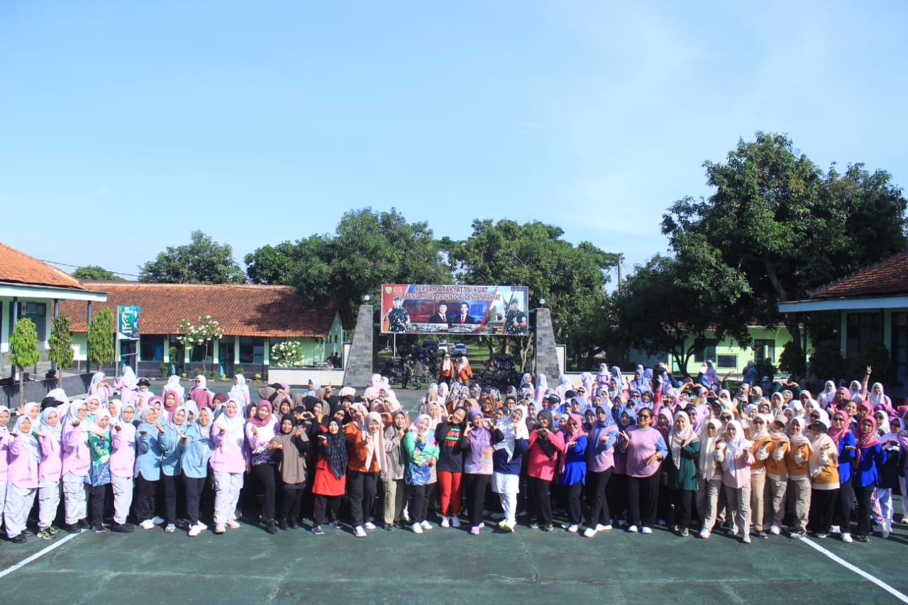Persit Kartika Chandra Kirana (KCK) Cabang XXVIII Kodim 0617/Majalengka menggelar kegiatan olahraga bersama di halaman Makodim 0617/Majalengka, Jalan KH Abdul Halim, Kelurahan Tonjong, Kecamatan Majalengka, Rabu (17/12/2025).