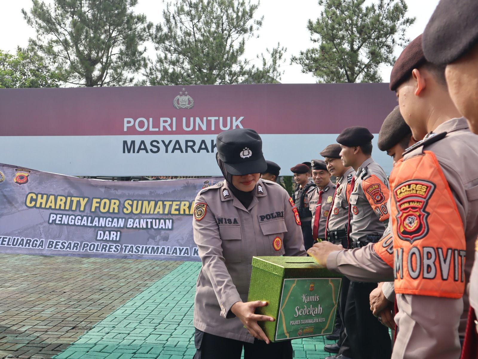 Polres Tasikmalaya Kota melaksanakan kegiatan penggalangan bantuan kemanusiaan bagi masyarakat terdampak bencana alam di wilayah Sumatra. Kegiatan tersebut dilaksanakan usai apel pagi yang dipimpin oleh Wakapolres Tasikmalaya Kota, Kompol Wahyu Maduransyah Putra, S.T., S.I.K., M.H., pada Selasa pagi, 16 Desember 2025.
