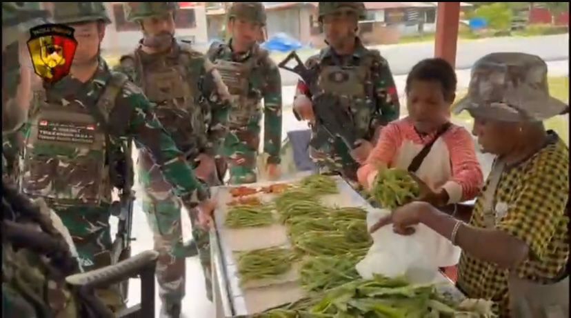 Satgas Pamtas RI PNG Kewilayahan Yonif 763/SBA Pos Aisyo laksanakan kegiatan komsos berupa membantu membeli hasil panen masyarakat Kampung Aisyo, Kabupaten Maybrat, Papua Barat Daya. (17/12/2025).